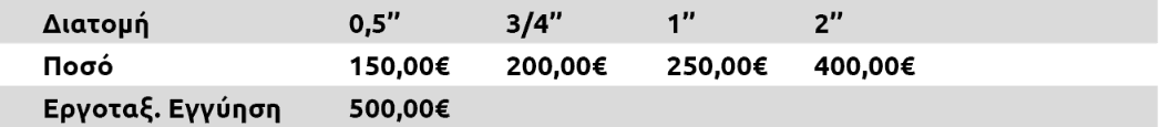 Εγγύηση υδρομετρητή βάσει της διατομής:
